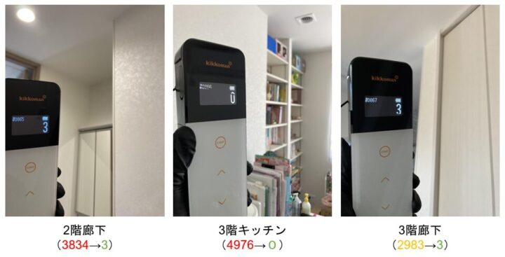 施工前は注意または汚染に該当する数値が確認されましたが、施工後はすべて清潔基準内に改善しました。