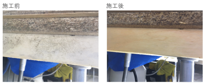 このように、施工前に確認されていたカビの付着が見られなくなり、床下の状態は見た目にも変化したことが確認できます。